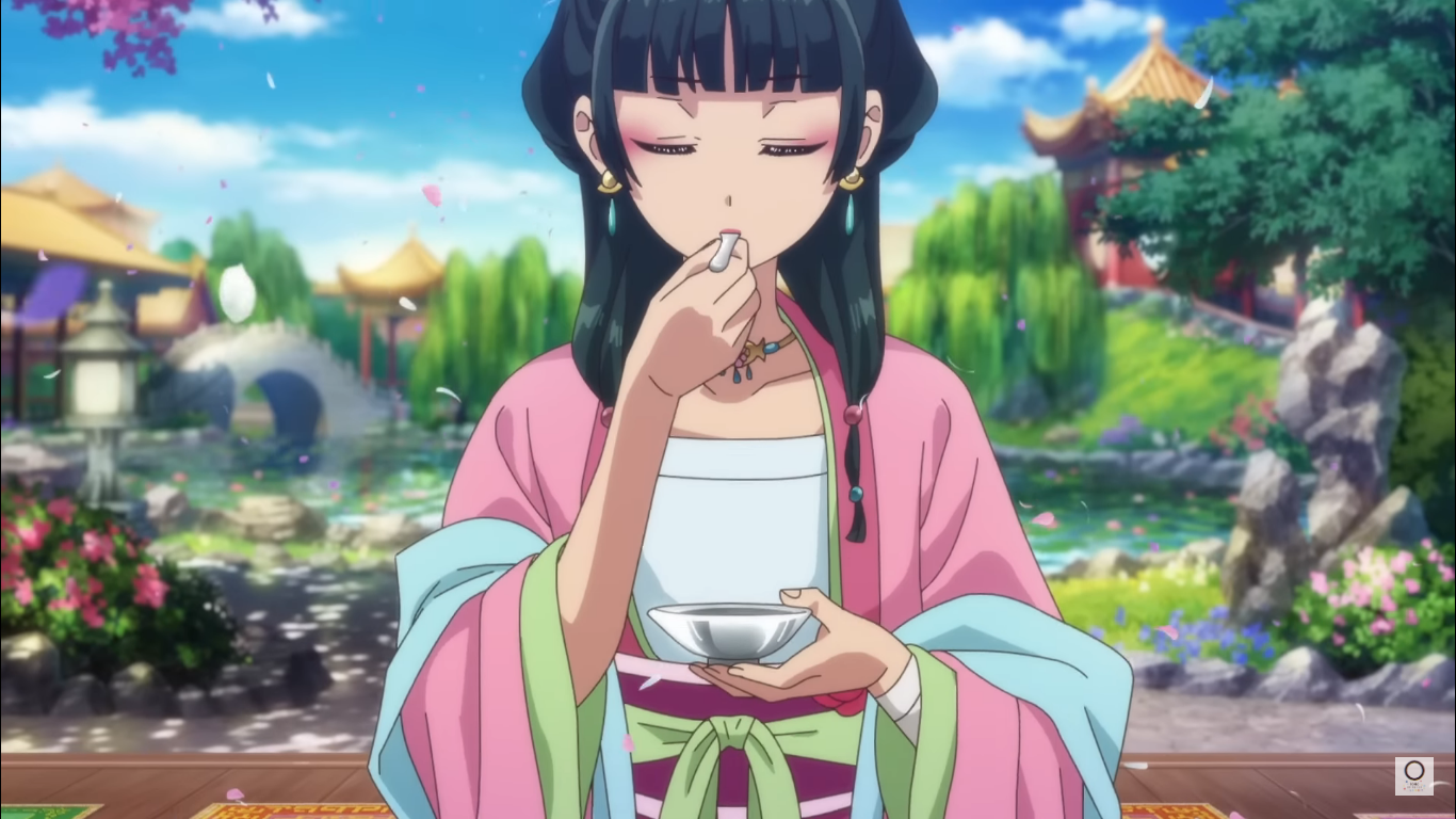 Это история о девушке, которая преодолевает множество препятствий и помогает императорскому двору и своему городу выжить в трудные времена, используя свои знания и таланты. А началось всё с того, что главная героиня аниме по имени Маомао была похищена из Квартала Красных Фонарей, где осваивала фармацевтику. Теперь она вынуждена выполнять тяжёлую работу обычной служанки, можно даже сказать, рабыни, во дворце Императора. Героиня не унывает и надеется, что трудные дни когда-нибудь закончатся. И они, о чудо, закончились гораздо раньше, чем она ожидала! Дело в том, что детки императора серьёзно заболели, и Маомао в тайне от всех решила найти причину недуга и помочь исцелиться царственным особам. Её таланты скоро были замечены, девушка оказалась во внутренних покоях и стала приближённой персоной во дворце!