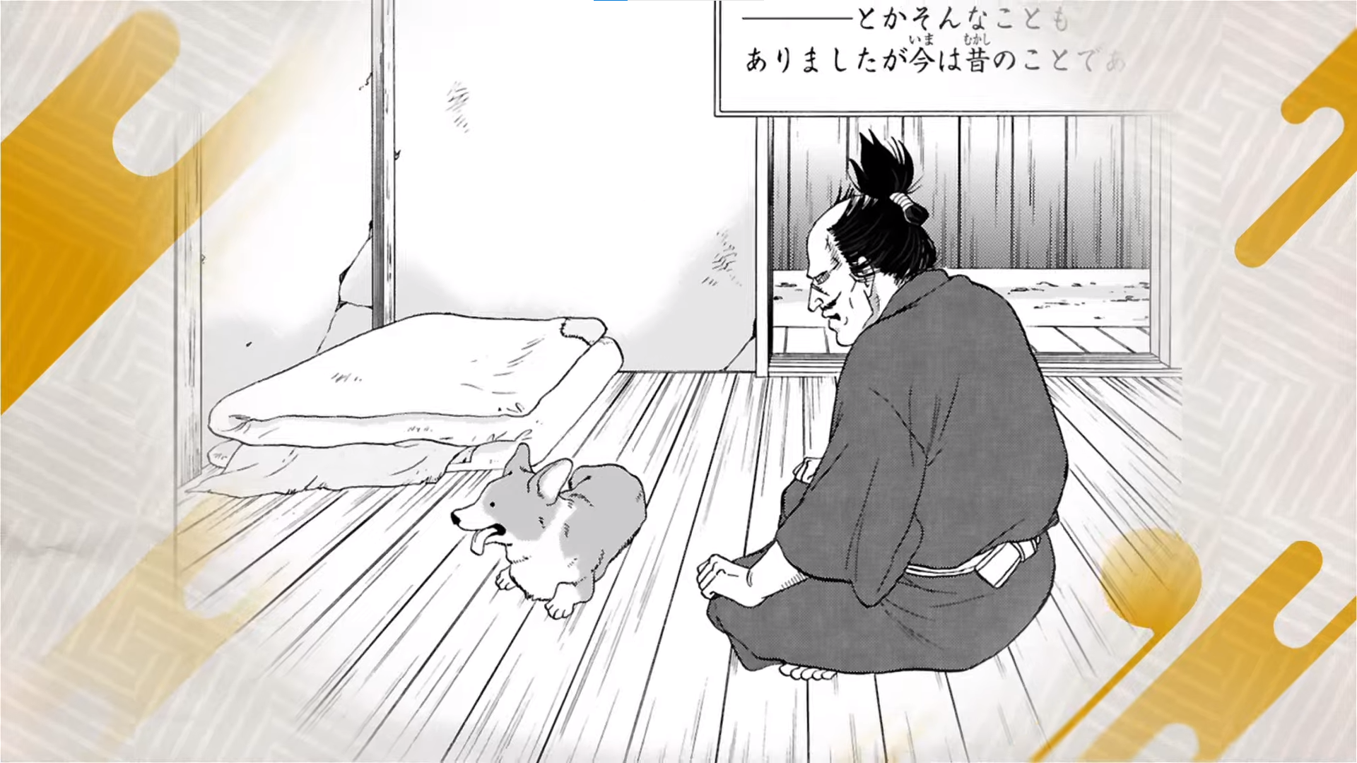 Сюжетной основой для этого аниме послужила одноимённая манга, автор которой - Риэ Нисида. Самурай, главный герой истории, был когда-то знаменит на всю Японию. Его невероятное боевое мастерство поражало не только врагов, но и друзей. Поле боя было для него как дом родной, а недруги разбегались в ужасе, лишь увидев бесстрашного бойца. Прошли годы, герой состарился и стал неинтересен клану, пришедшему в упадок. Сейчас старик живёт тихо, скромно и размеренно, вспоминая с грустью своё боевое прошлое. Однажды герой увидел жизнерадостного любознательного щенка, и его сердце растаяло. Теперь бывший самурай и пёс неразлучны.