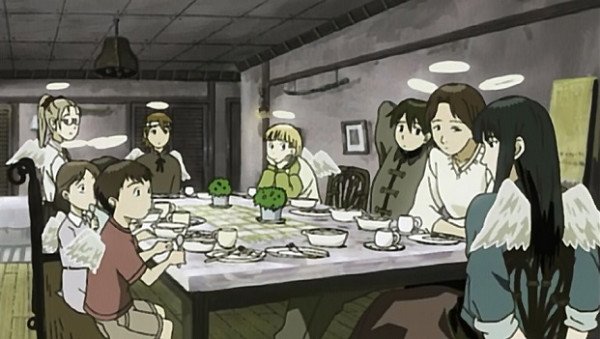 Девочка видит сон, в котором падает с большой высоты. Проснувшись, она обнаруживает себя в незнакомом доме, совершенно не помнящей ничего из своего прошлого, даже собственного имени. Её приветствуют другие обитательницы, живущие здесь уже давно. Все они — девочки примерно одного возраста с ней (разброс несколько лет), но с небольшими серыми крыльями за спиной и с нимбами над головами. От них она узнаёт, что появилась на свет, как и все присутствующие, из кокона, который образовался в одной из комнат дома. Поскольку никто из вновь появившихся не помнит своего прошлого, имена им даются по содержанию сна, виденного во время пребывания в коконе. Героиня получает имя Ракка («падающая»). Через некоторое время у неё прорезаются крылья, она получает нимб и начинает свою жизнь в этом мире, став одной из альянса серокрылых.